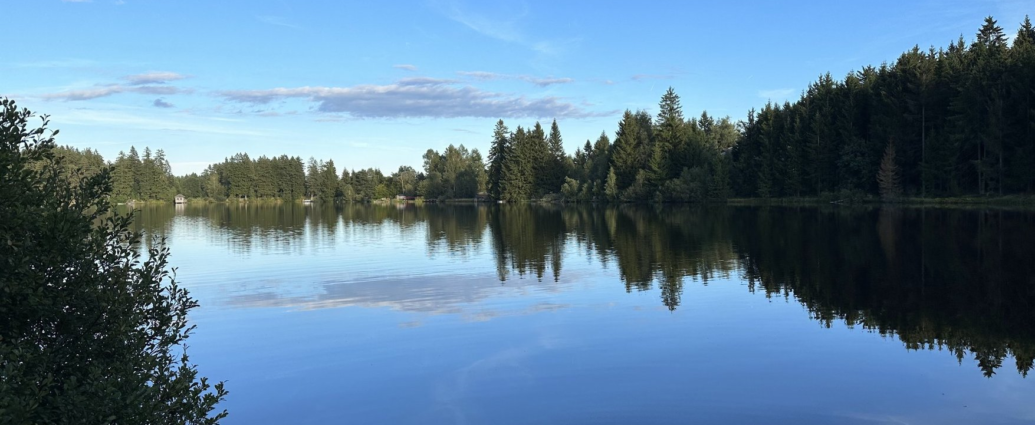 Der Edlesberger See gilt als besonders stilles Naturjuwel: Wald, Wiesen und Ufermoore rahmen das Wasser ein, und bis auf einen kleinen Bereich am Südrand bleibt das Ufer weitgehend unverbaut.